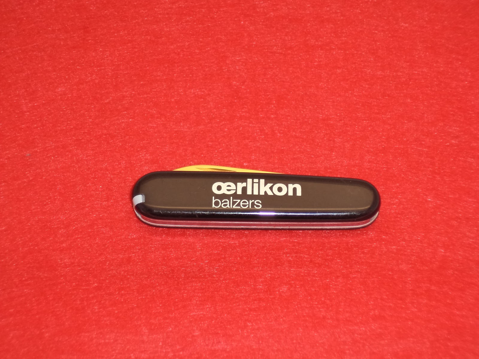 Victorinox Bantam - Oerlikon Balzers, Coatings manufacturer, PVD and similar. Based out of Liechtenstein. Blade and combo tool has a cool gold colored PVD coating.