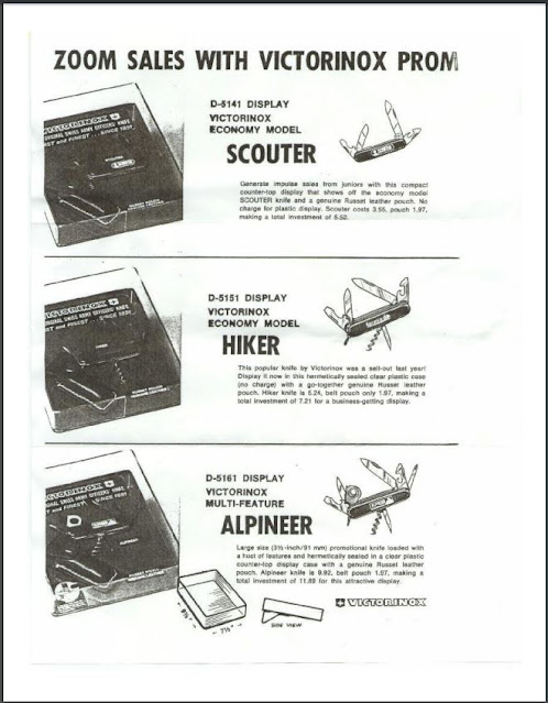 Older 1960's and 1970's era catalog pages for Victorinox/Elinox Alox knives.